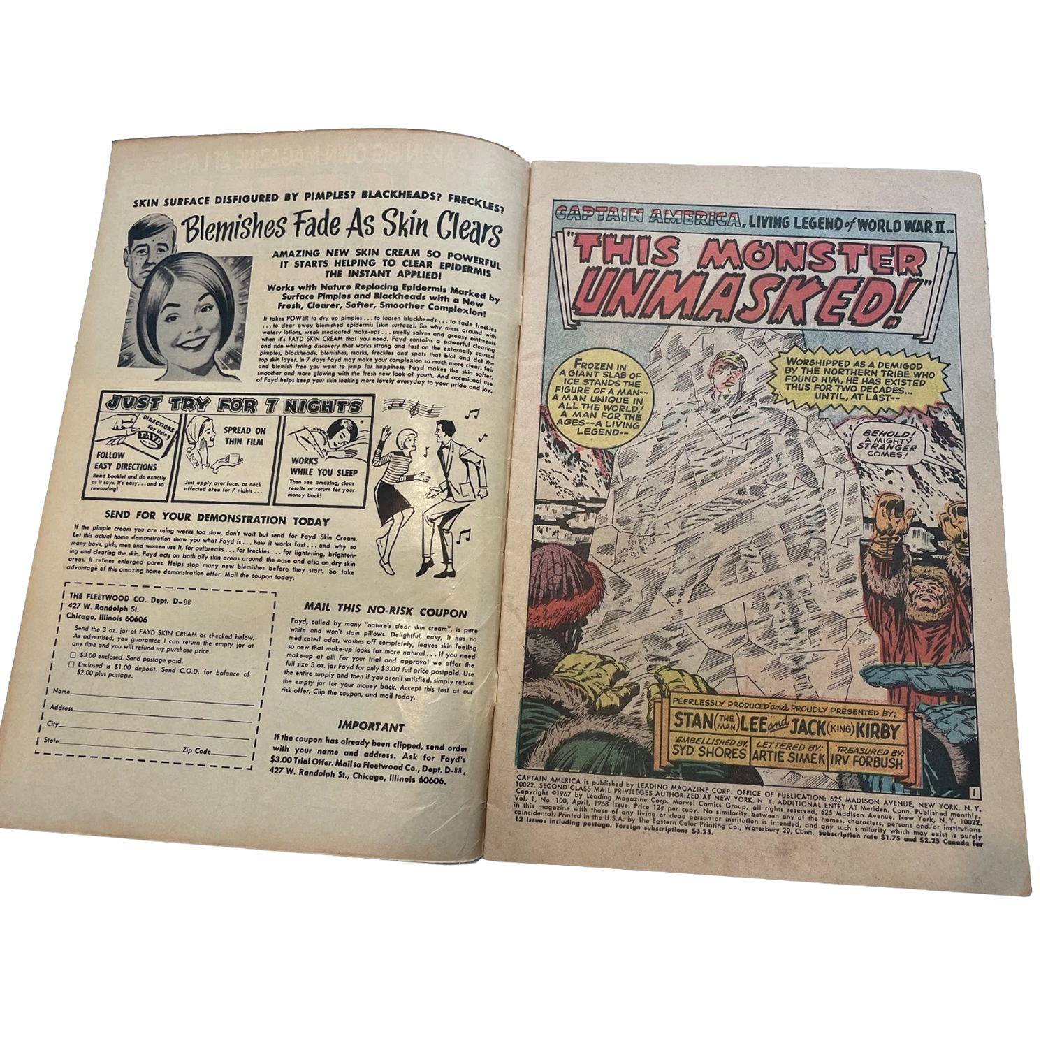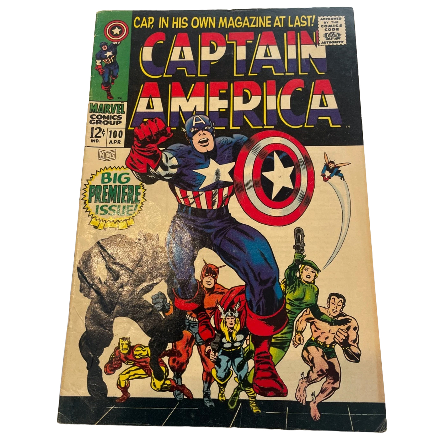 Captain America #100 First Silver Age Issue (This Monster Unmasked! by Stan Lee and Jack Kirby) Marvel Comics April 1968 (Very Good)