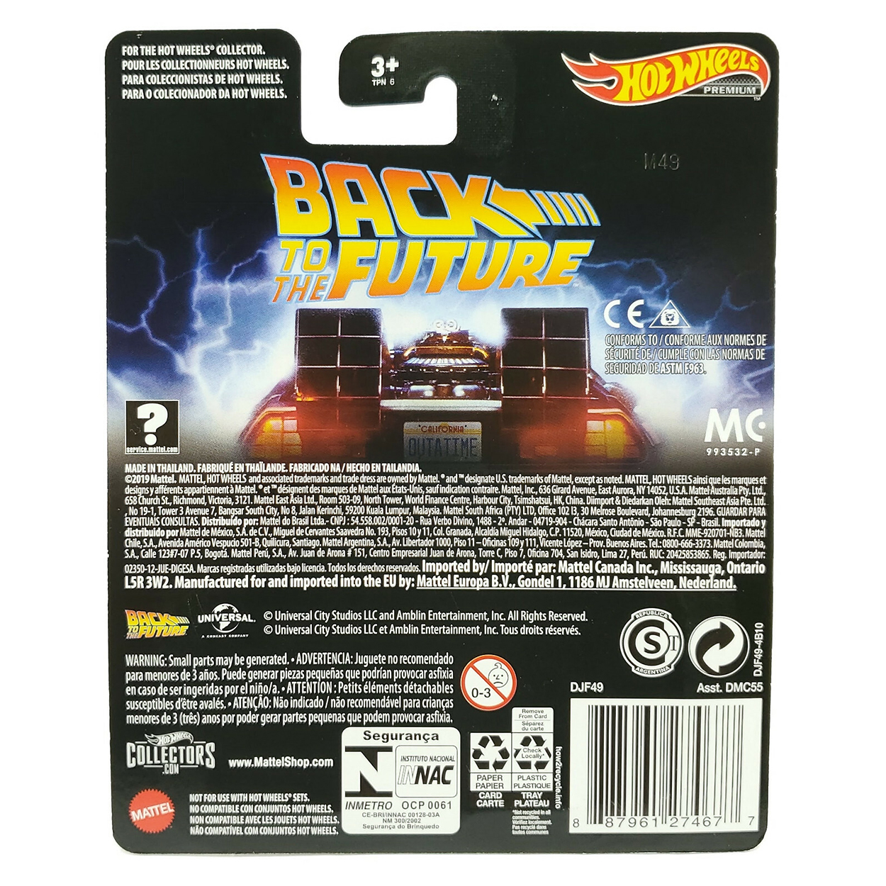 Get ready to travel back in time with the Hot Wheels Premium Back to the Future Time Machine featuring chrome Real Riders wheels!