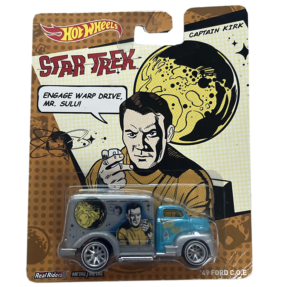 Complete 6-vehicle set featuring Captain Kirk, Spock, Dr. McCoy, Scotty, Lt. Uhura, and Sulu, each sealed in their original blister packs. Released in 2013 with premium Real Riders rubber tyres, this rare collection seamlessly merges Star Trek: The Original Series icons with Hot Wheels’ craftsmanship—a must-have for die-cast and Star Trek collectors alike.