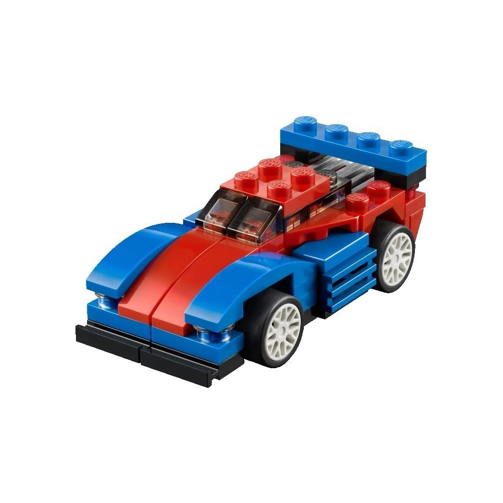 LEGO Creator 31000 features a 3-in-1 model that rebuilds into a rugged off-roader or a powerful truck with four real rubber tires, white wheels, and a bright red and blue design. You can store your creation in the sturdy reusable storage can or rebuild it into two more models! Shift into high gear and cruise in the Mini Speeder! Cause a scene on any street with the bright red and blue design, contrasted with big white wheels and real rubber tires! Rebuild it into a rugged offroader or powerful truck, both with headlights and taillights!