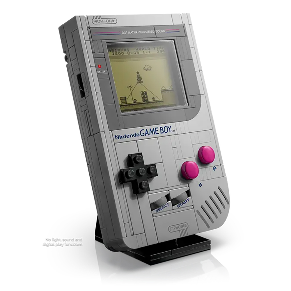 Authentic details – Recreate the +Control Pad, A and B Buttons, SELECT and START, the contrast adjustment and volume dial and the Game Pak slot, and display your brick-built Game Boy™ on the stand