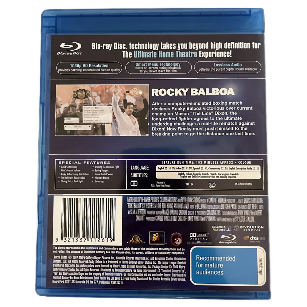 Rocky Balboa (starring Sylvester Stallone) Blu-Ray 5:1 DTS HD Edition (Brand New) Rated M