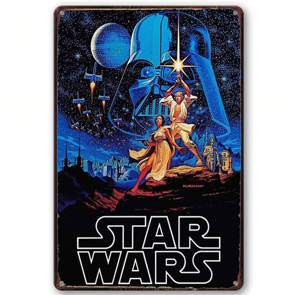 Celebrate the dawn of a galaxy far, far away with this brand-new Star Wars tin sign, styled after the iconic 1977 original movie poster. Measuring 20cm x 30cm, this high-quality metal sign is perfect for display in home bars, game rooms, offices, or collector shelves. Featuring bold, vintage-inspired artwork, this tin sign is a must-have for Star Wars fans, retro memorabilia collectors, and pop culture enthusiasts, capturing the excitement and nostalgia of the franchise’s cinematic beginnings.