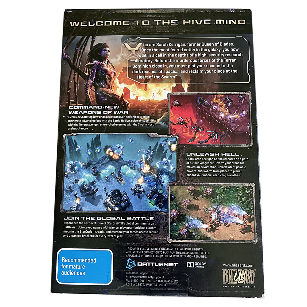 StarCraft II: Heart of the Swarm DVD for PC and Mac (2013) – Command Kerrigan and the Zerg in Blizzard’s acclaimed RTS expansion. Features an epic single-player campaign and enhanced multiplayer. Essential for StarCraft fans and collectors.